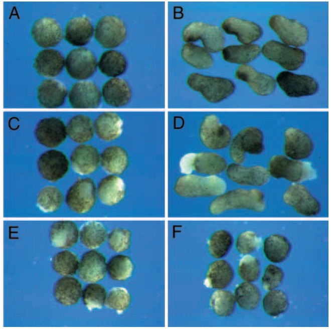 injected with RNA encoding Xom remain spherical. (F) Activin