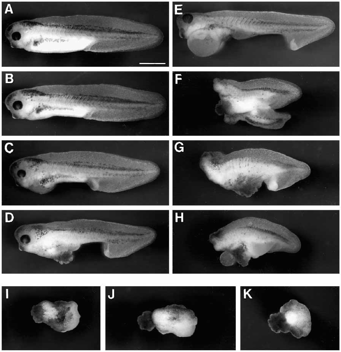 Vegetal-deleted embryos injected with vegetal pole cytoplasm. The DAI was 5, 5, 5, 5, 2, 2, 2 respectively. (I-K) Vegetal-deleted embryos