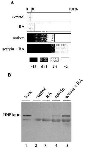 Fig. 6. Activation of the HNF1a gene by either activin A or retinoic