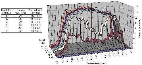 found that velocity varied from 5.0±1.0 mm/minute at a depth