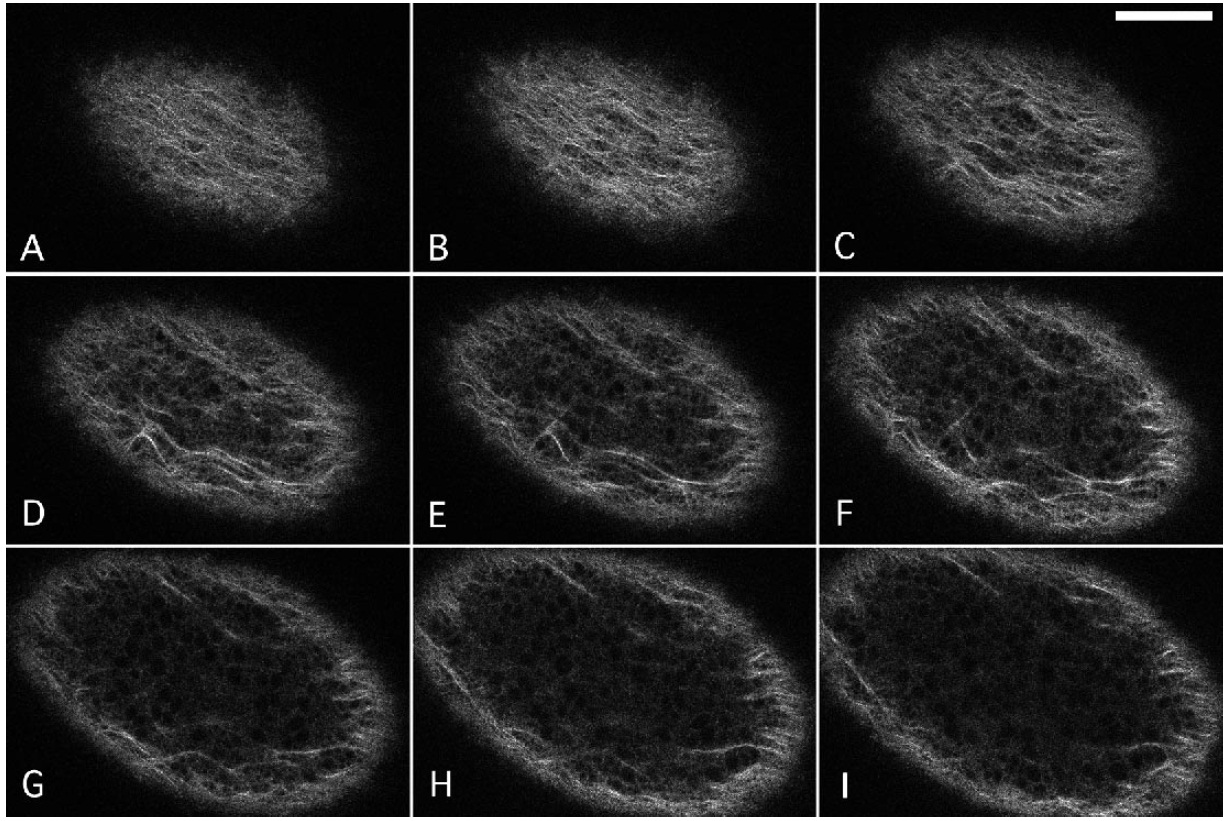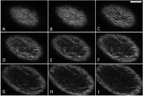Fig. 9. Microtubule dynamics during cortical rotation. Optical sections collected very rapidly show lateral movements of microtubule bundles