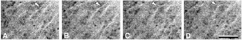image) can also be seen in these sections (arrows in C and D). Each image represents a single optical section. Normalized times are: A, 0.40; B,
