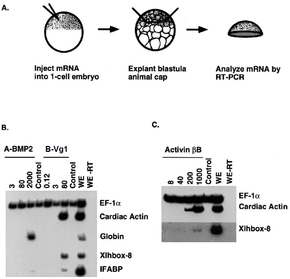 RT-PCR. (B) To express the mature forms of Vg1 and BMP-2, mRNA encoding chimeric