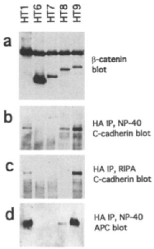 but not HT6, HT7, nor HT8. (d) Detection of APC in 13-catenin