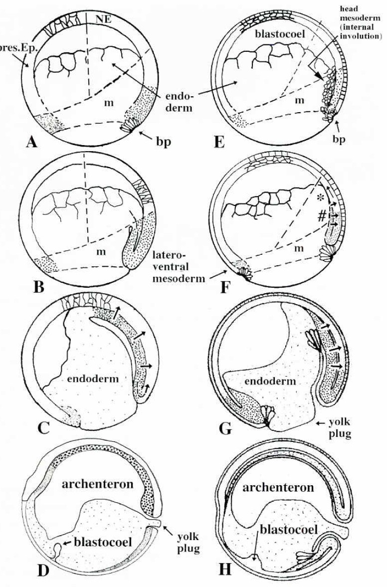 Fig. 4. Comparison of the gastrulation processes of Urodela