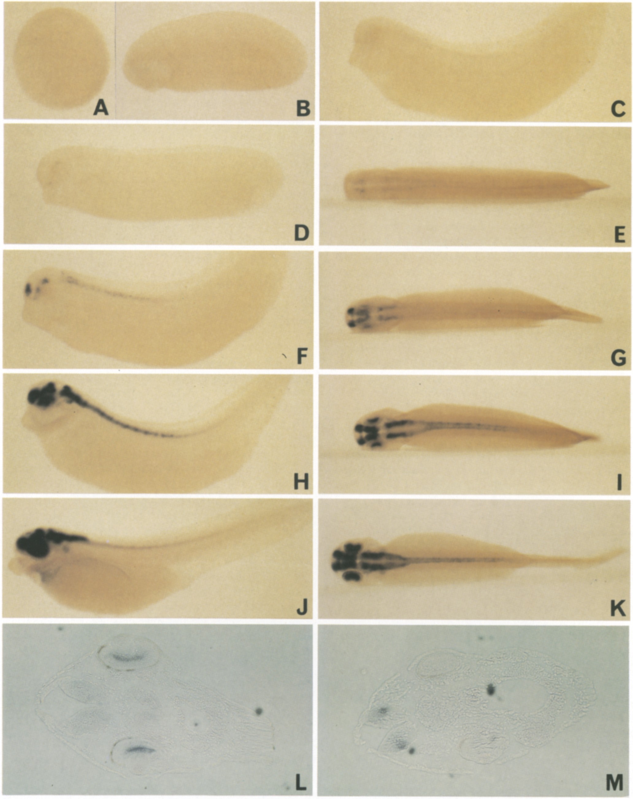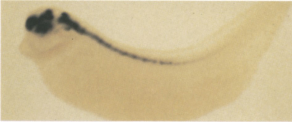 From a Xenopus tailbud cDNA library, we obtained the cDNA for a novel cadherin which was named as XmN-cadherin (Xenopus maternally expressed neural cadherin). The cDNA consisted of 3690 bp and encoded 922 amino acid residues. XmN-cadherin preserved five extracellular cadherin motifs, a single transmembrane domain, and a cytoplasmic domain, and was closely related by its sequence to R- and N-cadherin. In the adult frog, XmN-cadherin mRNA was detected strongly in ovary, testis, brain, eye, and kidney, and weakly in stomach, and intestine. In the egg, the mRNA occurred as a maternal mRNA at a relatively high level, and its level became very low by the neurula stage, then increased steadily thereafter. Dissection experiments with 8-cell stage and neurula stage embryos revealed that the maternally inherited mRNA was relatively uniformly distributed within the embryo. By a sharp contrast, whole mount in situ hybridization revealed that the zygotically expressed mRNA occurred almost exclusively in neural tissues such as brain, the anterior part of spinal cord, and the optic and otic vesicles. Thus, XmN-cadherin appears to have at least triple functions; it probably contributes in early embryos to cell-type non-specific cell adhesion, but in post-neurula embryos may be responsible for the development and/or maintenance of anterior neural tissues, and may be used in adult frog for the development and/or maintenance of neural, endodermal and reproductive organs.