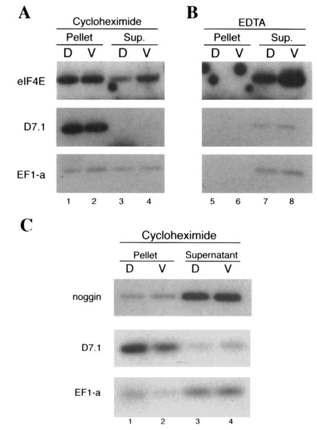 contrast to translationally active RNAs for D7.1 and eIF4E (shown in