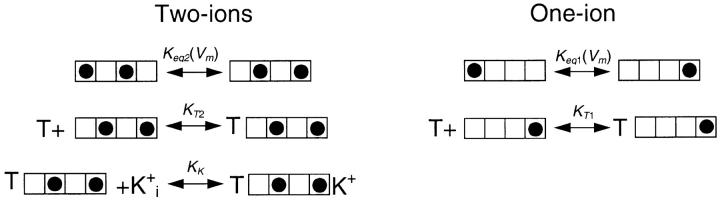 Affinity and location of an internal K+ ion binding site in shaker K channels.
