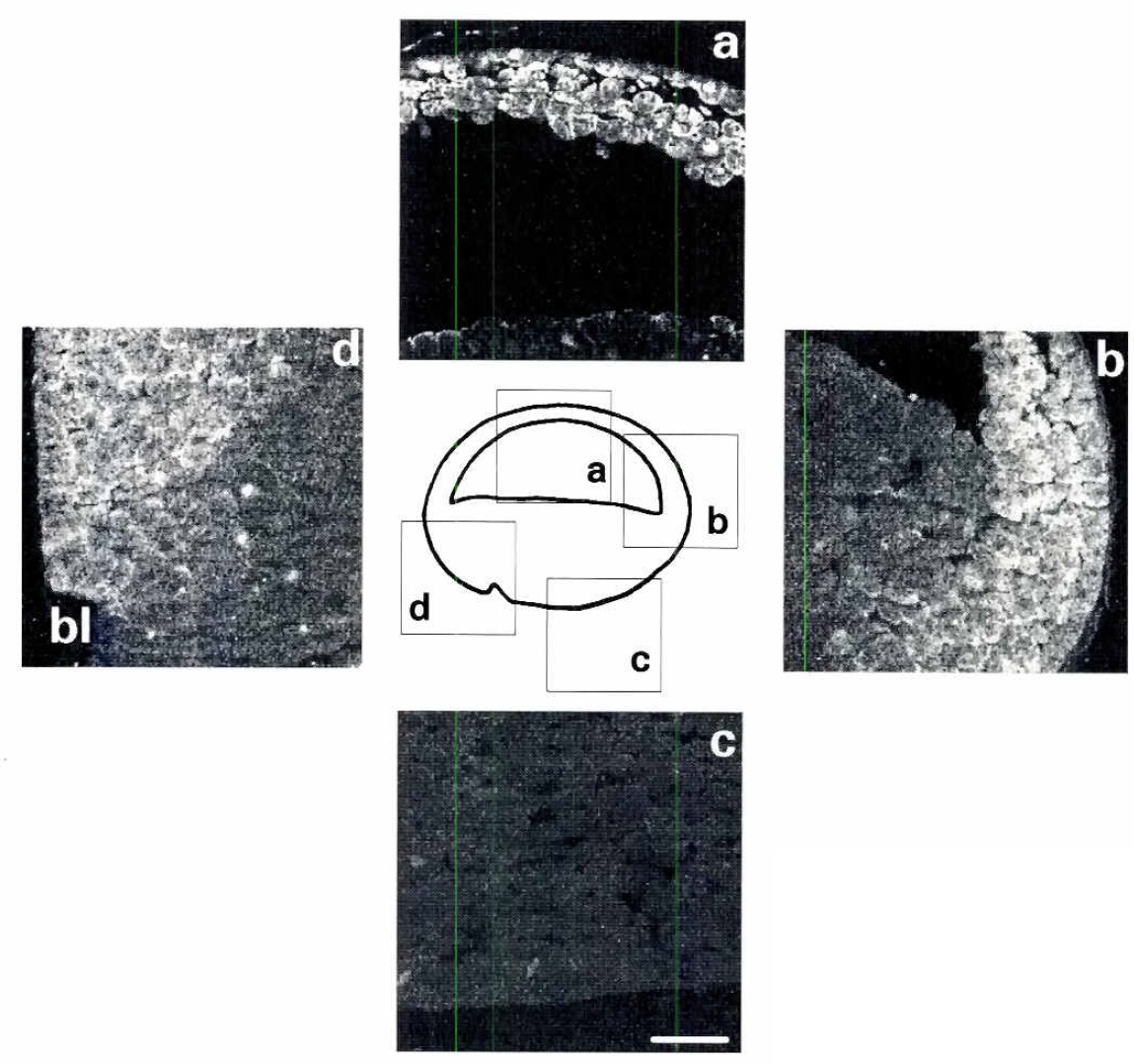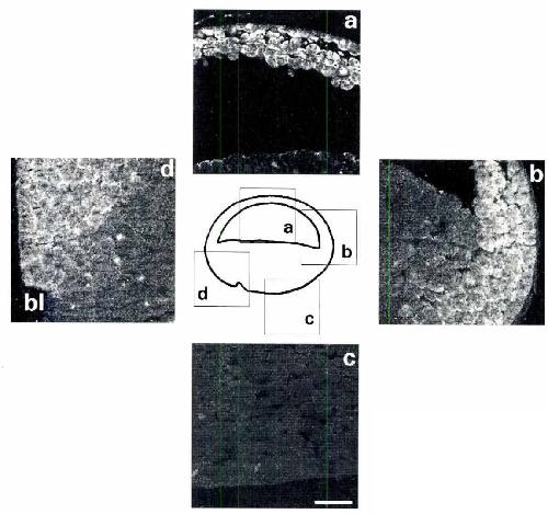 No labeling was observed in the animal (a) or rhe vegeral (bl half