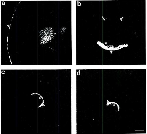 cytoplasm (asterisk) and at the plasma