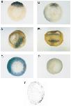 throughout the marginal zone. (D) Ventralized UV-treated embryo, vegetal view. No staining is visible. (E) Transverse histological section