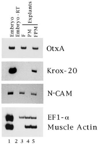 Krox-20 in explants of prospective forebrain (lanes 3-7) or spinal