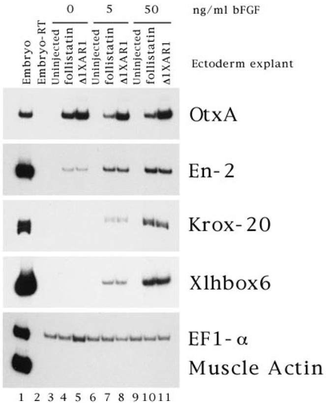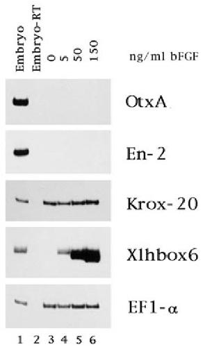 Xlhbox6 and EF1-a. (A) Treatment with 5 ng/ml bFGF induced
