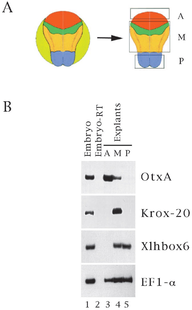 forebrain marker OtxA, the hindbrain marker Krox-20, and the spinal