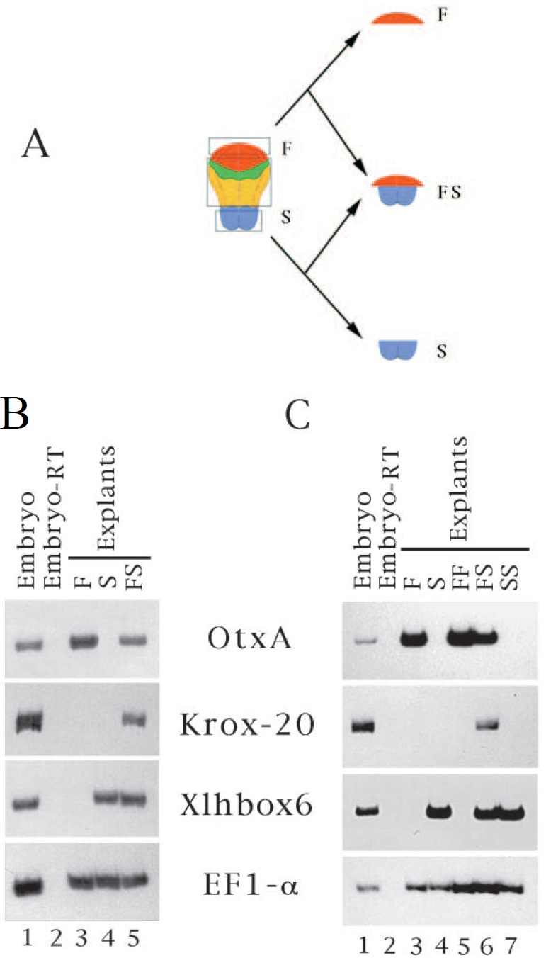 forebrain. Tissue explants are designated F for prospective forebrain,