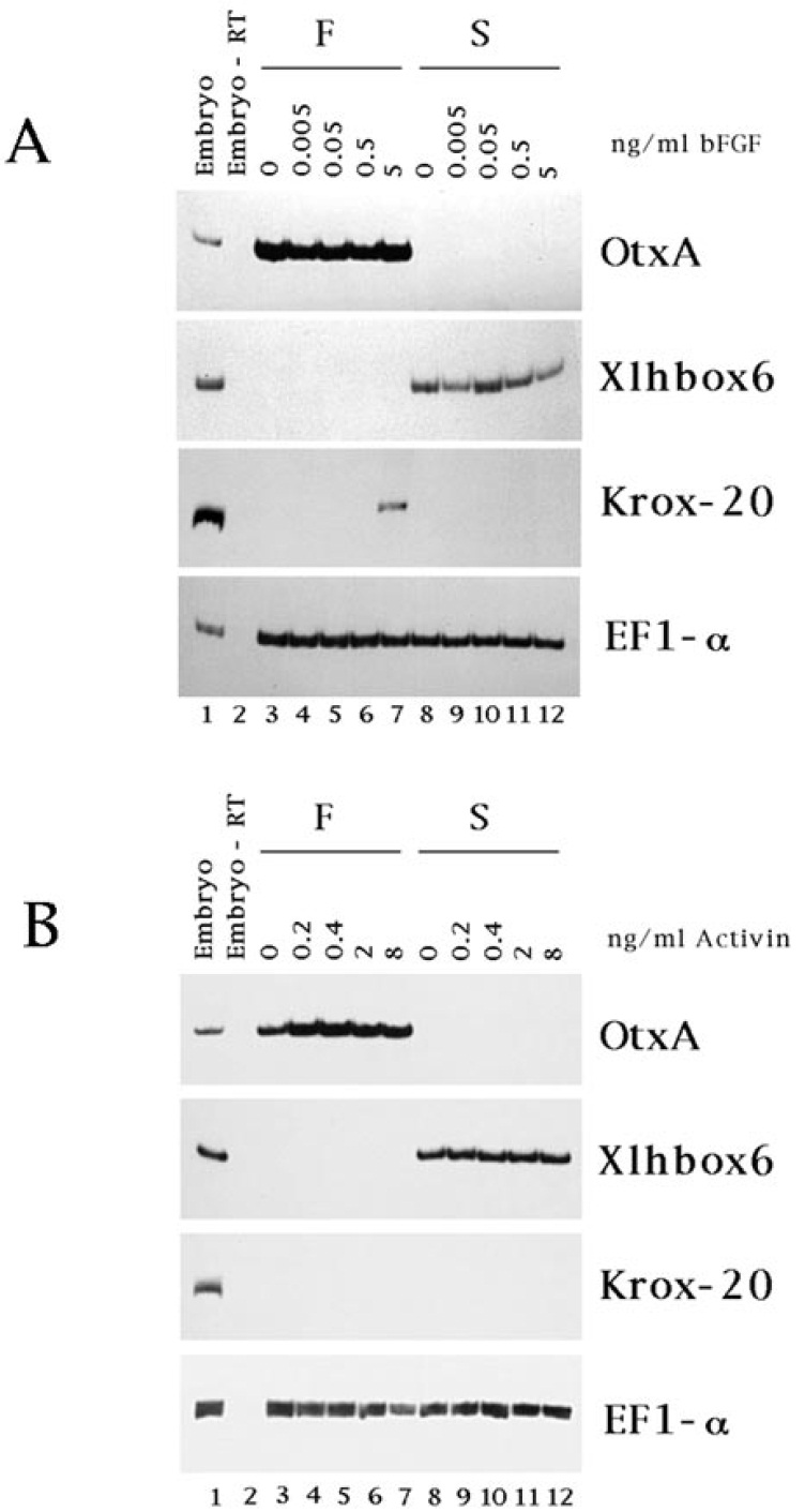 Krox-20 expression in forebrain explants (lane 7) while lower doses