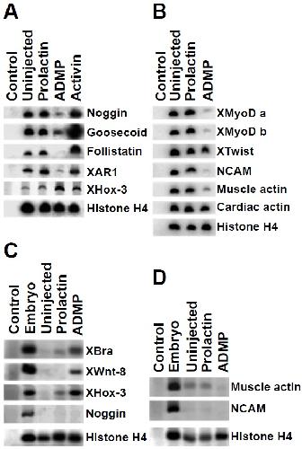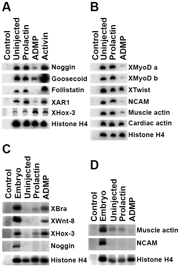 and 100 pg of either ADMP or preprolactin mRNA demonstrating