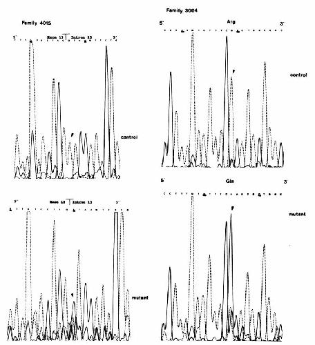 mutation 1471 + 1 g to a in exon 13 in GM family 4015 (pedigree and SSCA in fig. 4).