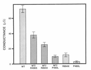 10% of WT currents. Thus, R894X is intermediate between a fully