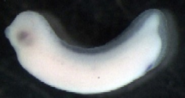 dach1 (dachshund homolog 1) gene expression in Xenopus laevis embryos, NF stage 28, as assayed by in situ hybridization, lateral view, dorsal up, anterior left. |