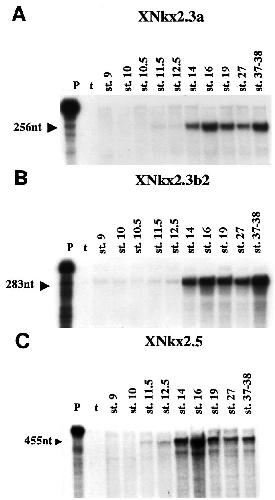 Fig. 6. RNAse protection analyses of XNkx-2.3 and XNkx-2.5
