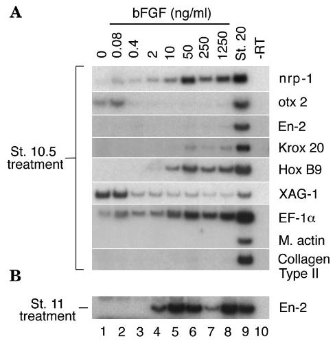 and 10 ng/ml Krox 20 are induced, while En-2 or otx2 is not induced