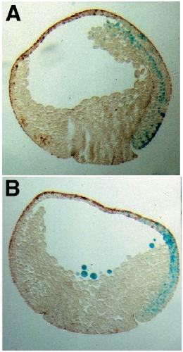 concentrated in the nuclei of these cells (in contrast to X-gal-stained