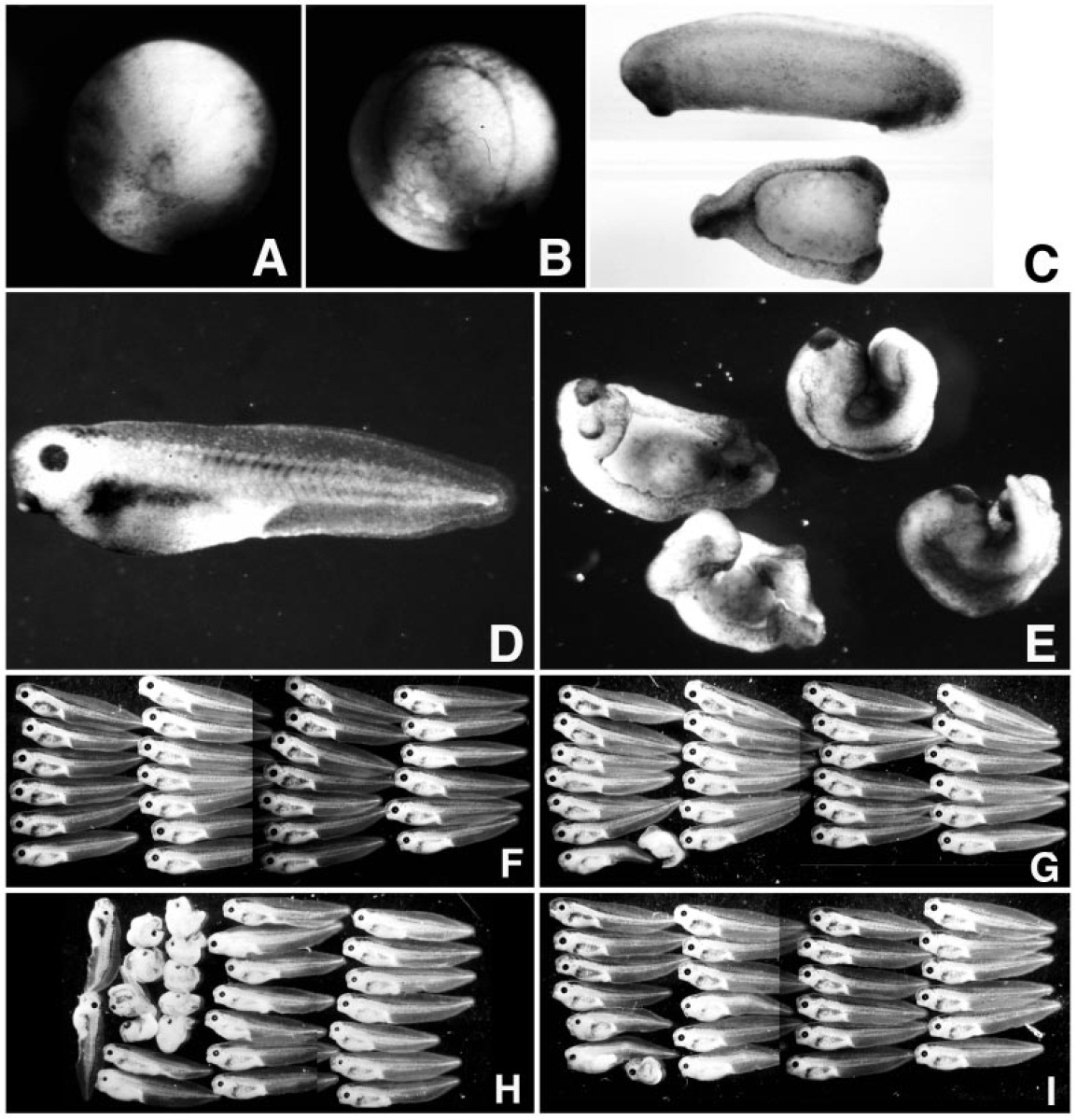 All embryos are oriented with dorsal at the top and anterior to the left (E-H). In this experiment, 40 of 64 embryos appeared abnormal, 13