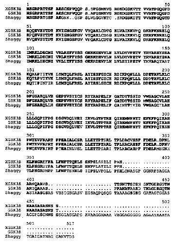 with the Drosophila shaggy and rat GSK-3f3 proteins.