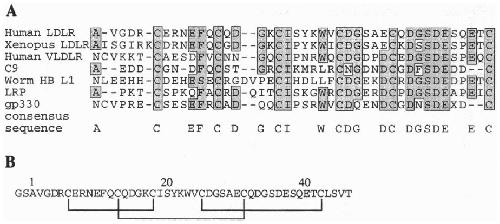 LB1 from human (18) and Xenopus (19) LDL receptor