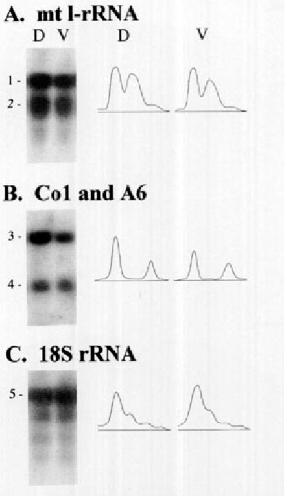 FIG. 1. Mitochondrial RNA is more abundant in dorsal cells than in