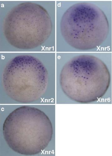 Nodal-related gene Xnr5 is amplified in the Xenopus genome.