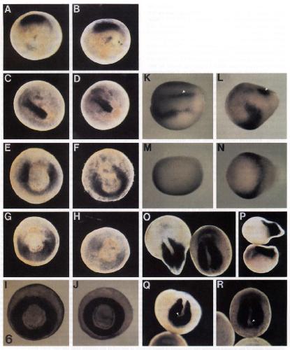 expression is apparent. Anterior is up. Photographs for Q and R were taken such that t he view was centered on the blastopore. Due to the