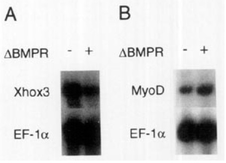 and RNA from ~BMPR-injected embryos is in lane 2. EF-la was used
