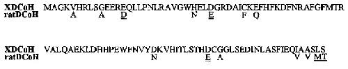 and rat DCoH. Amino acids that differ in the rat sequence from the