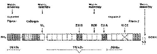 collagen-binding domains are outlined, and the RGD cell binding site in the 10th type III repeat is indicated. |