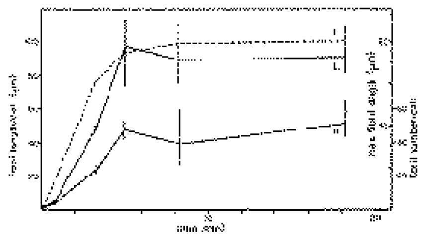 average increase in fibril number (n) is 10 fibrils/min. The growth of single fibrils (Fig. 7a) is shown for comparison (l, broken line). |