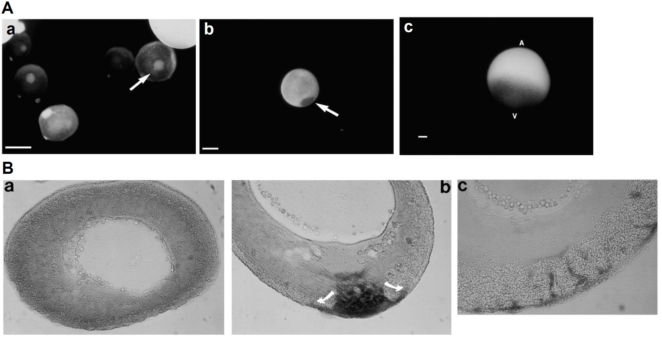 the future marginal zone. A, animal pole, V, vegetal pole. Bars represent