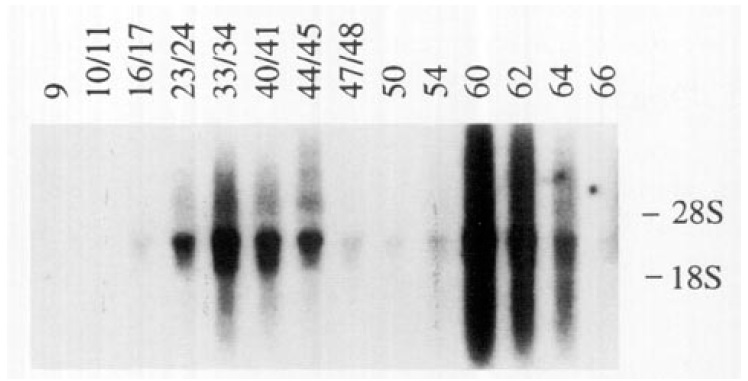 (see Ma terials and Methods for the rationale and problems associated with using heterologous eDNA probes). (A) Northern blots (like those