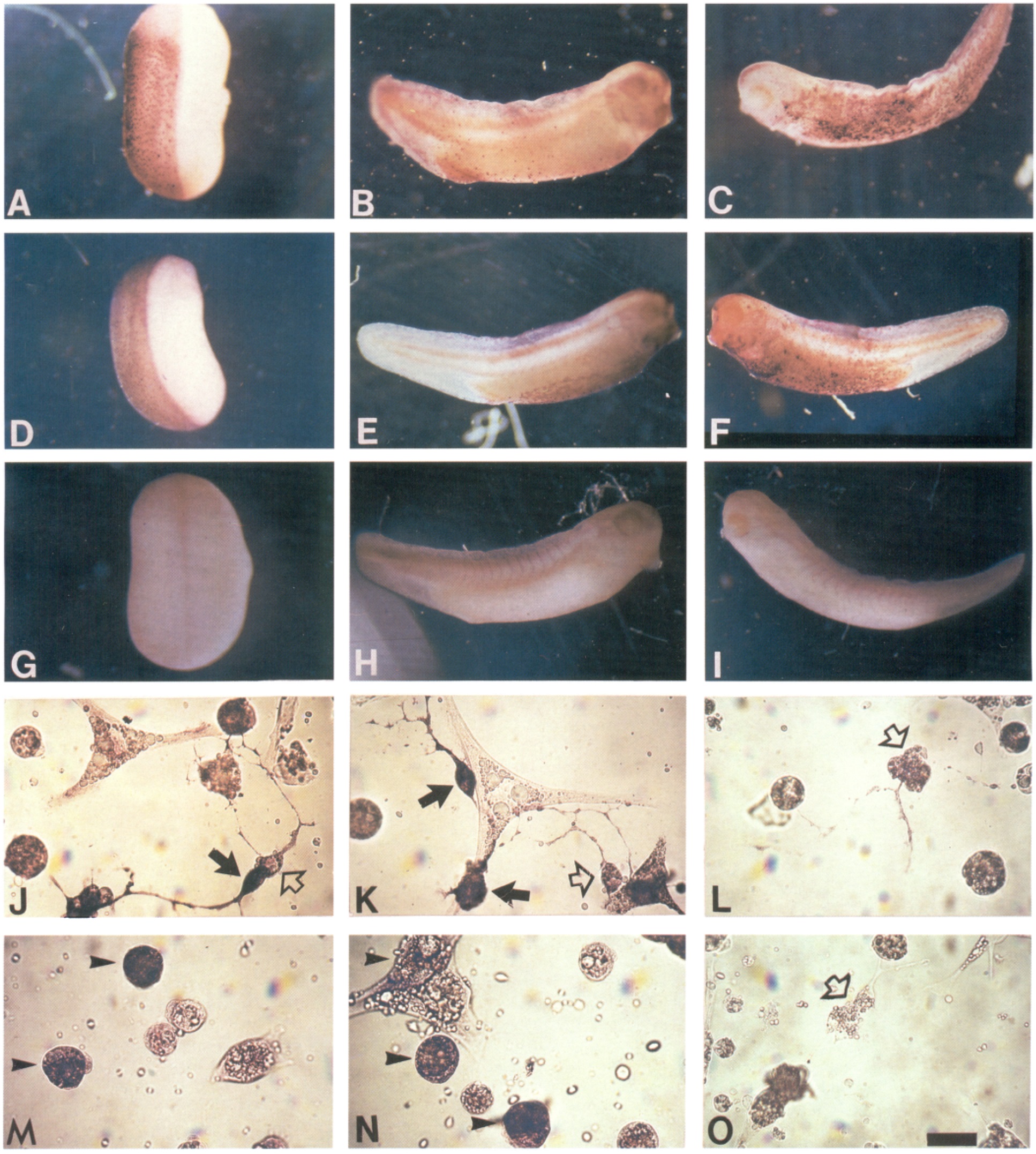 embryo. All neurons (open arrow) stained with the same low intensity, and no myocytes showed significant staining. M and N, Myocytes in nervemuscle
