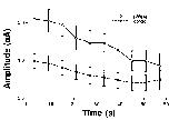 (top) representtsh e averageE SCa mplitudea t a singles ynapsea nd the scatteringo f the data alongt he abscissias for displayo nly. Mean ESC