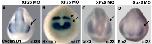 The MO-injected side is on the right (arrow). (A) The XFz5 MO causes no change in the level of Cyclin D1 expression in the optic vesicle, although the size of the expression domain is reduced. (B) The Xfz5 MO causes no change in the eye field, as demonstrated by Rx expression, or in anterior-posterior patterning, as demonstrated by the midbrain-hindbrain marker Engrailed (En) (arrowhead) at stage 17. The Xfz5 MO (C) or Sox2 MO (D) causes a reduction in the size of the expression domain for Six3, but the relative levels of expression are unchanged when compared to the uninjected control side. |