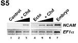 Supplemental Figure S5 Suboptimal doses of Chordin (15 pg and 30 pg) and Ectodermin (100 pg) were co- expressed to monitor for biological cooperation. RT-PCR analysis of the injected cells explanted at blastula show that amounts of Ecto and Chd that are unable by themselves to activate NCAM expression (lanes 2 and 4), can achieve in combination effective BMP inhibition (lane 5). |