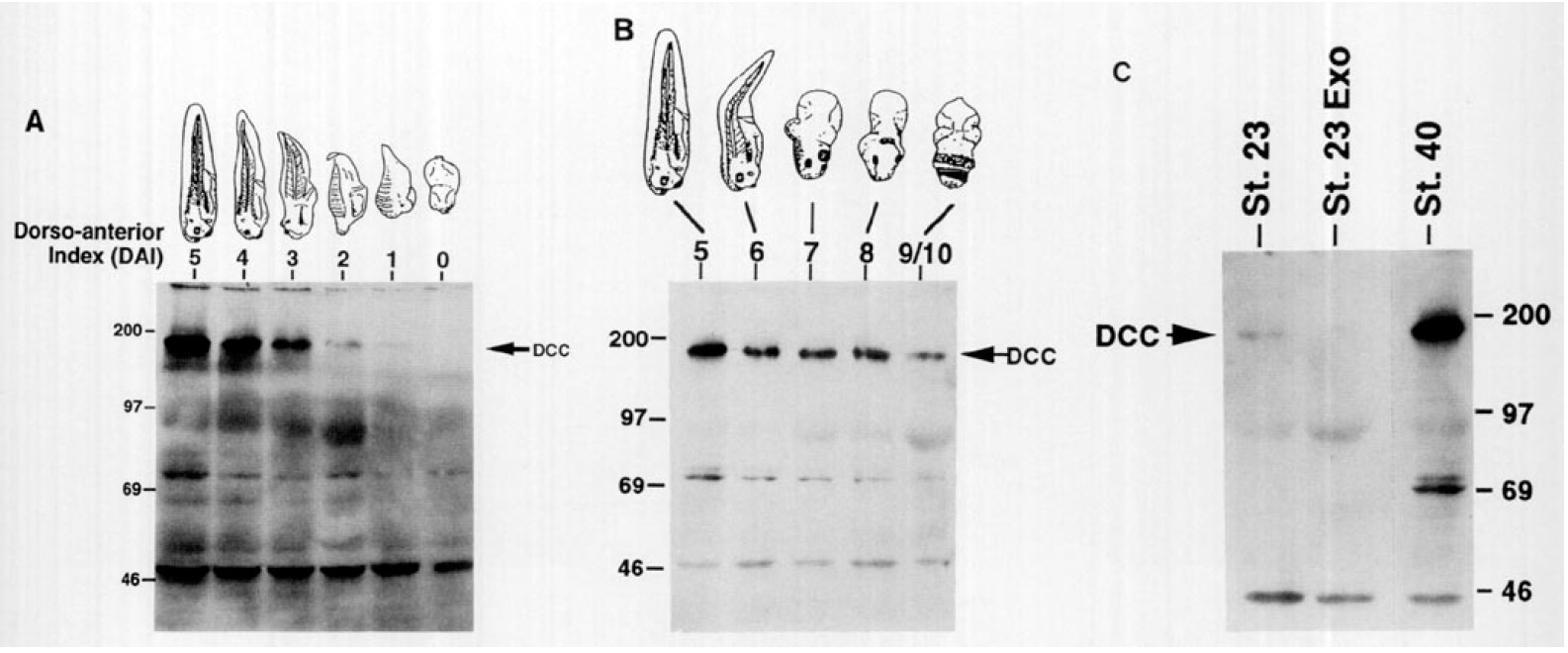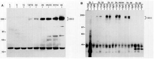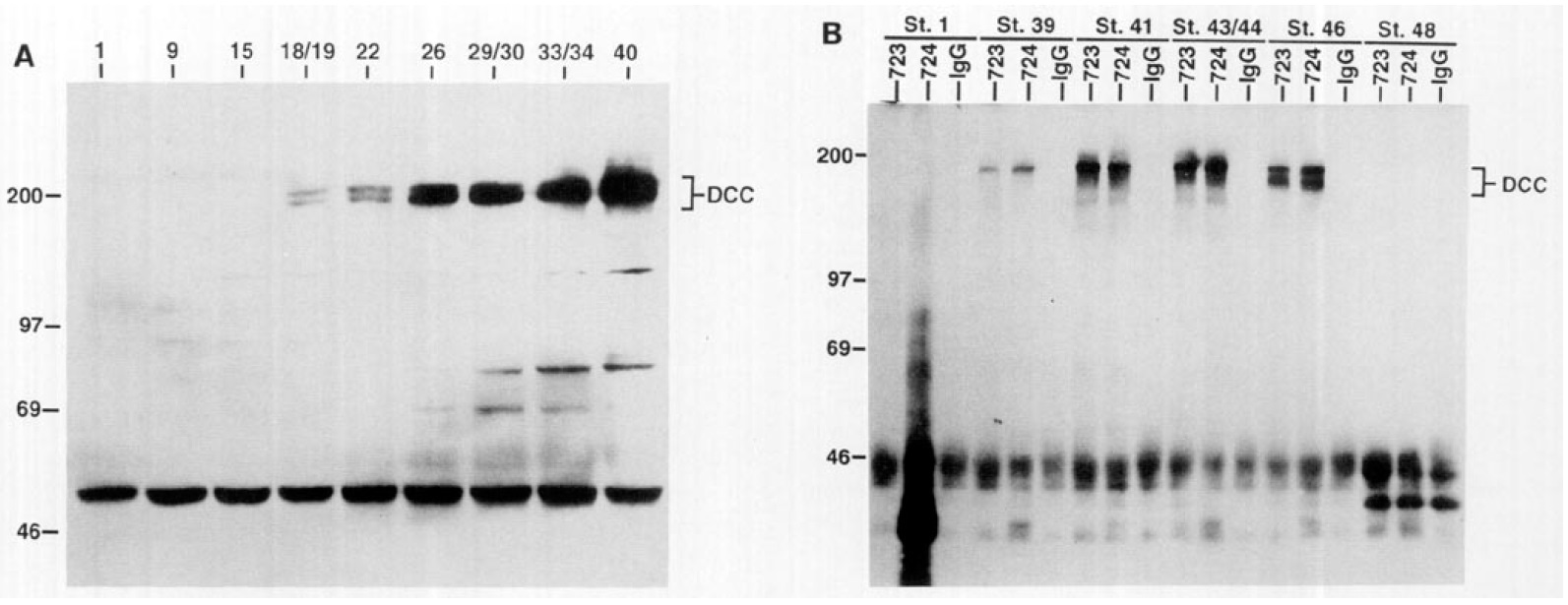 723 as described in the legend to Fig. 3. DCC protein and mobility of molecular weight markers are indicated. (B) Studies of LiCldorsalized