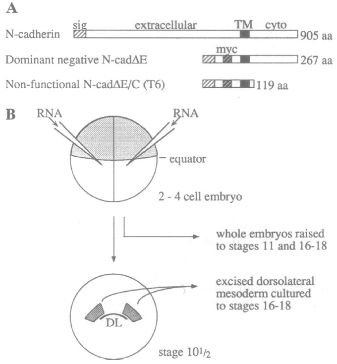 deleted (16). The two mutants contain a Myc tag (myc). (B) Cadherin