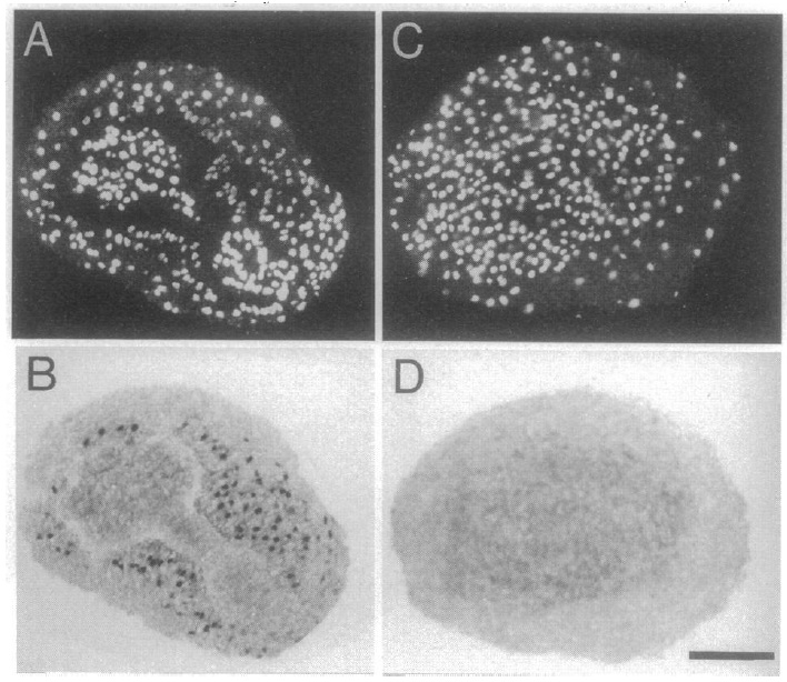 with Hoechst 33258 to reveal the nuclei, and B and D show immunostaining