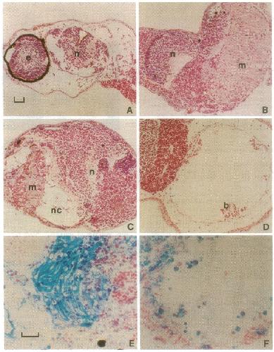 containing blood cells (b) was developed in the explants injected with H20 (D, control). A and B were different sections of the embryos. (E and
