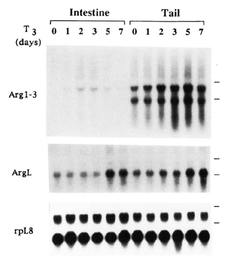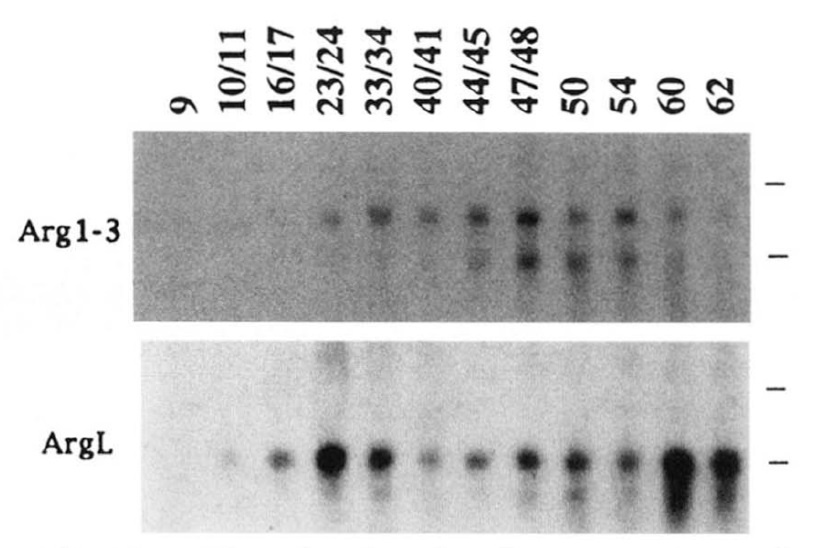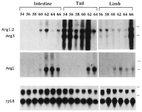 FIG. 4. Northern blots showing that Xenopus argl-3 and argL