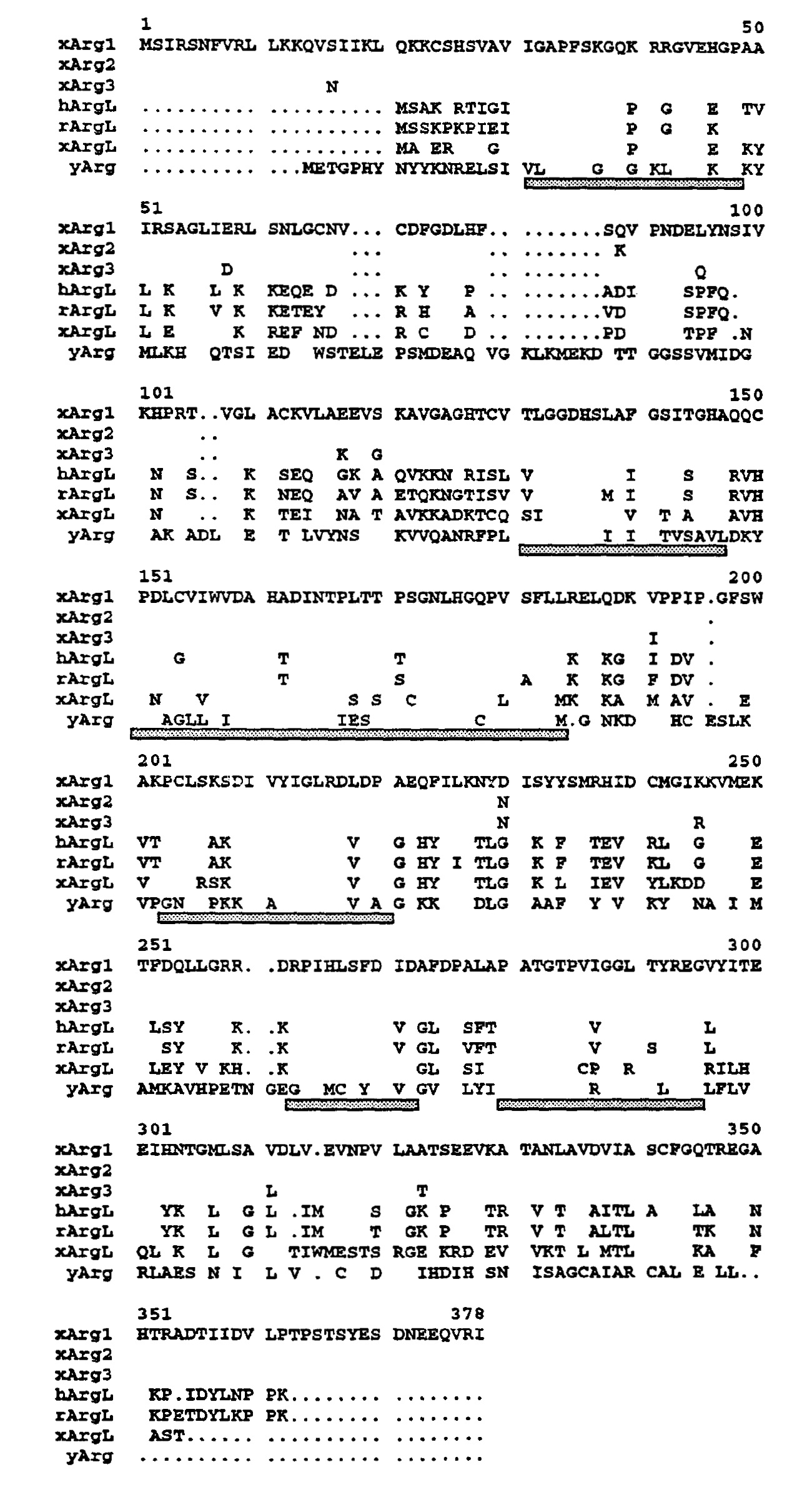 (xArgL, Xu et al., 1993). Gaps (indicated