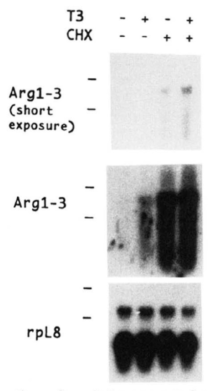 slight up-regulation by T3 was produced even in the presence of CHX. |